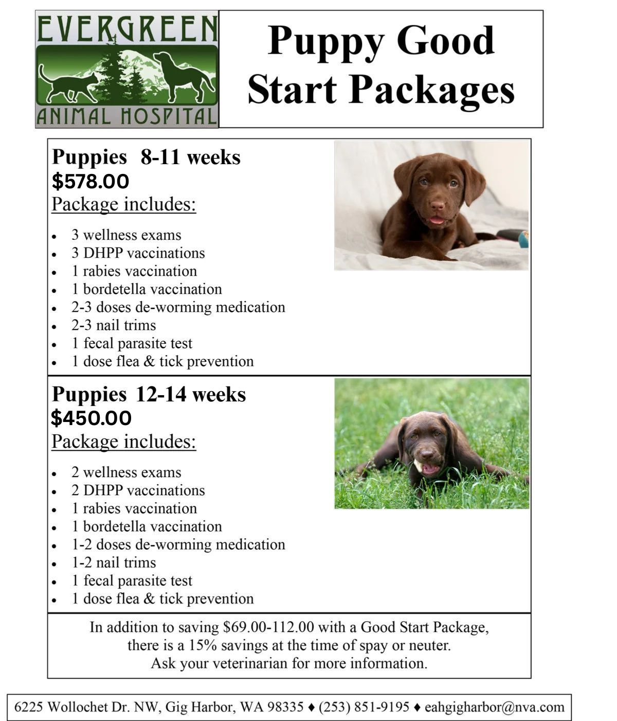 Puppy Packages at Evergreen Animal Hospital in Gig Harbor, WA